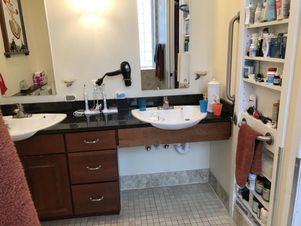 The entire unit is accessible to someone in a manual or powered wheelchair due to the open design, wide doorways and lack of floor thresholds, and lowered cabinets and light switches. One bathroom is handicap accessible with open-style shower, turning space, accessible sink, toilet/bidet and reinforced grab bars. There is an accessible office.